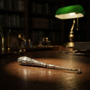 Антикварный крючок для кодлера с рельефным орнаментом из благородного металла 24 см, Англия 1900 год G&C Ltd