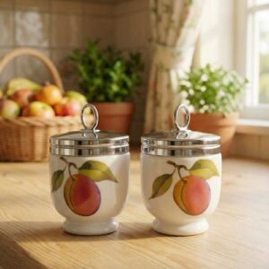 Парные фарфоровые кодлеры на 1 яйцо с декором “Персик”, в родной коробке 9х11х4 см, Royal Worcester, 1985 год, Англия