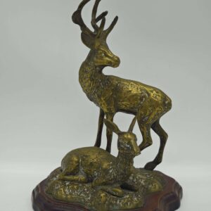 Винтажная статуэтка из олова грация природы, воплощенная в искусстве: элегантный олень, уютно прилегший в ожидании весенних цветов