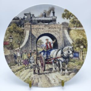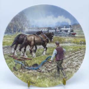 Декоративная фарфоровая тарелка «Труд на земле и дух прогресса: сцена с паровозом и пашущей лошадью»