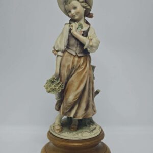 Статуэтка “Девушка с корзиной цветов”. Холодный фарфор, роспись, дерево, ручная работа. Высота 28 см. Capodimonte, Италия 1982 год