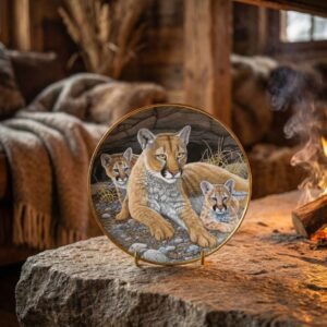 Декоративная фарфоровая тарелка Mountain Lioness and Cubs с пумой и детёнышами золочёный кант The Franklin Mint США 1993 год