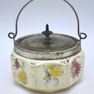 Винтажная бисквитница с серебрением и латунной ручкой, фарфоровая банка с цветочным узором, антикварный контейнер для сладостей