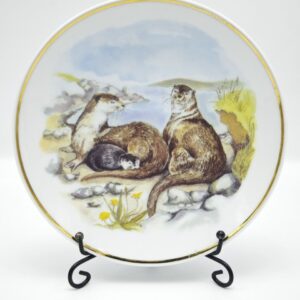 Винтажная декоративная тарелка “Дикая природа Британии: Выдры” от Reader’s Digest, 1970-е. Фарфор. Позолота.