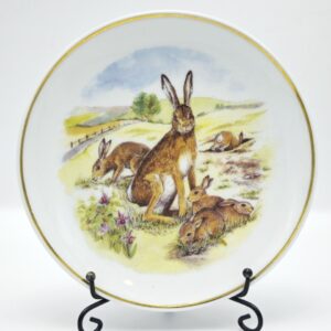 Винтажная декоративная тарелка “Дикая природа Британии: Зайцы” от Reader’s Digest, 1970-е. Фарфор. Позолота.