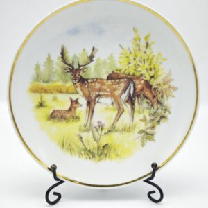 Винтажная декоративная тарелка “Дикая природа Британии: Олени” от Reader’s Digest, 1970-е. Фарфор. Позолота.