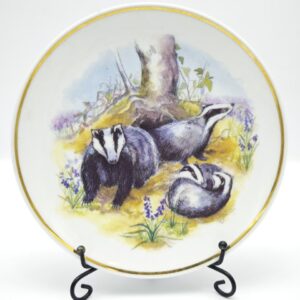 Винтажная декоративная тарелка “Дикая природа Британии: Барсуки” от Reader’s Digest, 1970-е. Фарфор. Позолота.