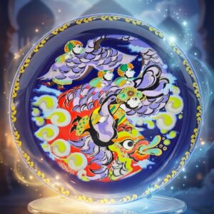 Декоративная фарфоровая тарелка Sindbad der Seefahrer с динамичным сюжетом полёта и позолотой, диаметр 16.5 см, Германия, 1970 год, Rosenthal Studio Line