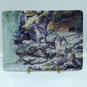 Декоративная коллекционная тарелка “Властители Скал. Волки поднимающиеся по скалистому склону”. Фарфор, деколь. США, Bradford Exchange