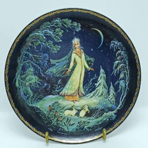 Декоративная коллекционная тарелка “Снегурочка”. Фарфор, золочение. Холуйская миниатюра. Анатолий Каморин, 1989