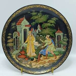 Декоративная тарелка «Жар-Птица. Прекрасная Елена». Фарфор, деколь, золочение. СССР, Палехская Миниатюра. Россия