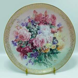Тарелка винтажная декоративная цветы «Розовая фантазия». Лена Лю. Фарфор, деколь, позолота. W. J. George, США 1991 год
