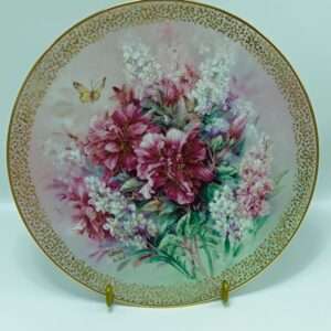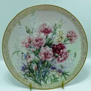 Тарелка винтажная декоративная цветы «Серенада из гвоздик». Лена Лю. Фарфор, деколь, позолота. W. J. George, США 1992 год