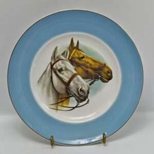 Тарелка декоративная с лошадьми. Фарфор. Позолота