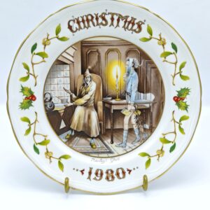 Винтажная рождественская тарелка 1980 из коллекционной серии. Фарфор. Позолота. Aynsley, Англия