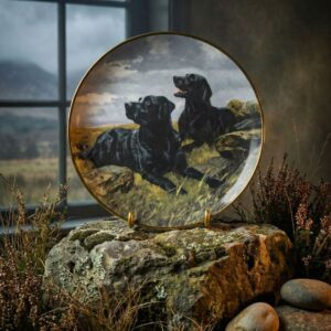 Декоративная винтажная тарелка “Ready To Go. Лабрадоры на привале”. Фарфор, деколь, золочение. Royal Doulton, Англия. Диаметр 20,5 см. Сертификат.