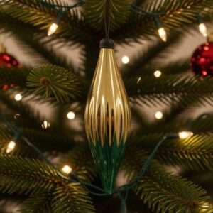 Элегантная винтажная стеклянная ёлочная игрушка-капля 1950-х: золотой градиент с патиной времени
