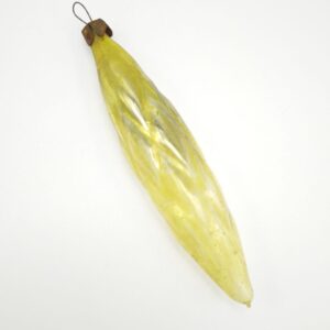 Винтажная стеклянная елочная игрушка ‘Золотой Лист’ 1950-х: раритетная хрустальная капля с патиной эпохи, хранящая тепло семейных праздников