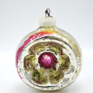 Редкая винтажная стеклянная ёлочная игрушка 1950-х: ручная работа с цветочным узором