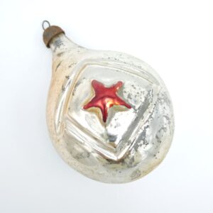 Уникальная двусторонняя винтажная стеклянная ёлочная игрушка 1950-х: сияющая красная звезда и очаровательная мышка в одном артефакте