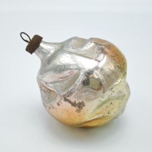 Винтажный стеклянный шар-игрушка с серебряной патиной и медным подвесом
