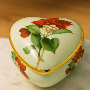 Элегантная винтажная фарфоровая шкатулка в форме сердца с росписью цветов и золотой отделкой — изысканное украшение и хранитель ваших драгоценностей