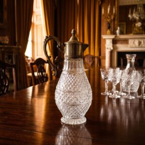 Винтажный кувшин декантер для вина хрустальное стекло серебрение с крышкой 31 см Англия 1970