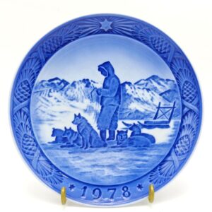 Винтажная рождественская тарелка Royal Copenhagen “Обед на санной поездке” (Rast p Slderejsen) 1978 года, редкая коллекционная модель из серии “Пейзажи Гренландии”