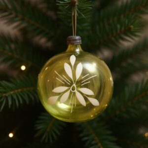 Винтажная стеклянная ёлочная игрушка “Солнечный блеск” с белоснежной снежинкой, ручная роспись