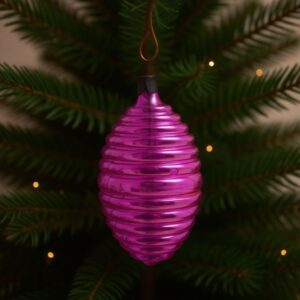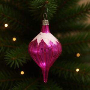 Винтажная стеклянная елочная игрушка в виде розовой спиральной шишки (с повреждением/сколом на дне)