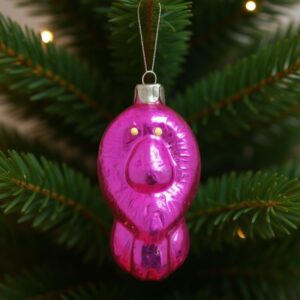 Винтажная стеклянная елочная игрушка в виде розового льва