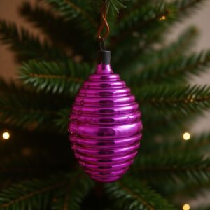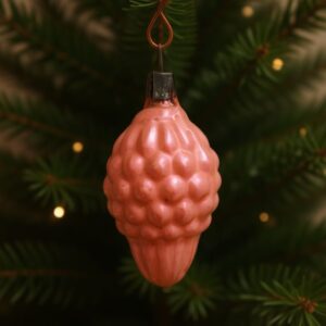 Винтажная стеклянная елочная игрушка в виде розовой спиральной шишки