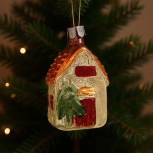 Винтажная стеклянная елочная игрушка “Сказочный домик с елью”