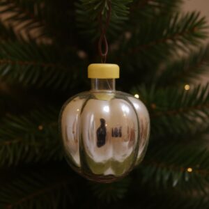 Винтажная стеклянная елочная игрушка “Серебряное яблоко с розовым оттенком”