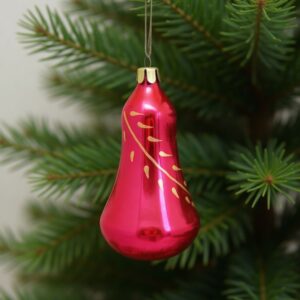 Винтажная елочная игрушка из стекла в форме груши, малиновый перламутр с золотым узором