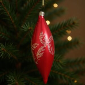 Винтажная стеклянная елочная игрушка “Красное ретро-сияние” с узорами, 60-е годы