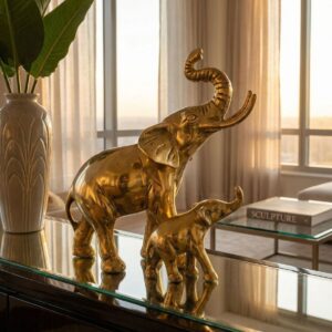 Антикварная латунная статуэтка Слоны мать и детёныш, 12 х 12 см, Индия, 1960 г.