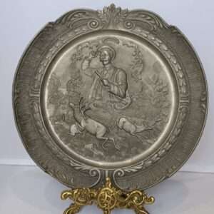 Винтажная настенная оловянная тарелка Охота Германия