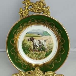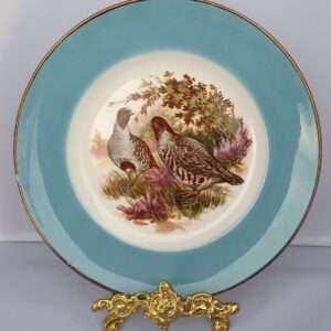 Тарелка настенная декоративная. Фарфор, деколь, золочение. Дичь. Охота. Перепел. Англия