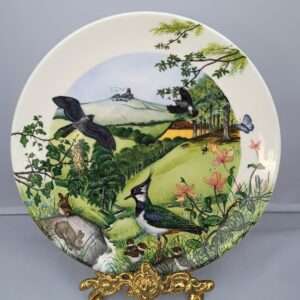 Тарелка винтажная декоративная настенная. Птицы. Ежик. Луга.Фарфор. Англия. Веджвуд Wedgwood