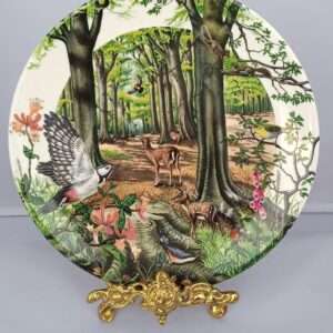 Тарелка винтажная декоративная настенная. Фарфор. Англия. Олени. Природа. Лес. Веджвуд Wedgwood