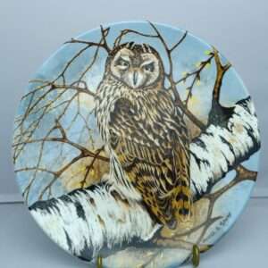 Винтажная настенная декоративная тарелка. Фарфор. Короткоухая сова. Coalport. Англия 1900 года