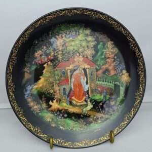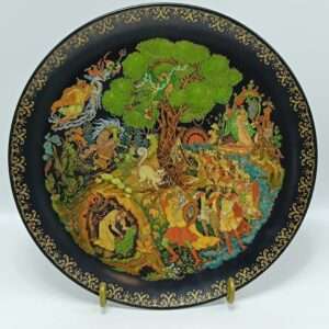 Декоративная коллекционная фарфоровая тарелка из серии «Русские Сказки. Лукоморье». А.С. Пушкин. Палех, Виноградовский Фарфоровый Завод, Роман Белоусов, 1989. Россия