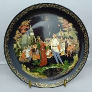 Декоративная коллекционная фарфоровая тарелка «Сказка о попе и работнике его Балде». А.С. Пушкин. Палех, Виноградовский Фарфоровый Завод