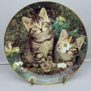 Декоративная винтажная коллекционная тарелка «Рукавица и Баловница». Коты. Фарфор, деколь, золочение, США, Danbury Mint