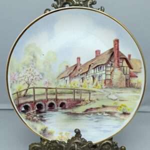 Тарелка винтажная декоративная настенная «Коттеджи в сельской местности» AJL Giftware. Фарфор. Золочение. Англия