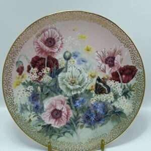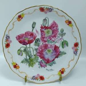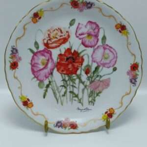 Тарелка винтажная декоративная цветы «Маковая пастораль». Лена Лю. Фарфор, деколь, позолота. W. J. George, США 1991 год