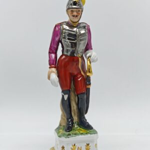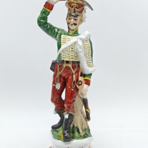 Статуэтка Обер-офицер лейб-гвардии гусарского полка. Фарфор. Ручная роспись. Позолота. Западная Европа 1970 гг. Высота 32 см. Битая