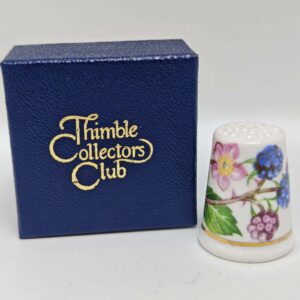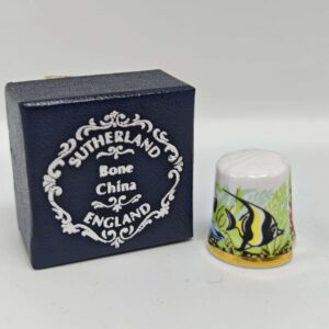 Коллекционный винтажный напёрсток Sutherland, Англия, фарфор с золотой ботанической деколью, в синей коробке,