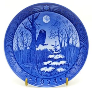 Винтажная рождественская тарелка Royal Copenhagen Зимние сумерки (Winter Twilight) 1974 года, редкая коллекционная модель с изображением совы в зимнем лесу под луной